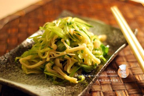 1.金针菇沸水焯熟,捞出沥干水备用。
