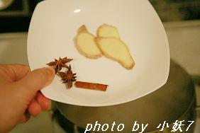 4,等水开后,放入姜片,大料和桂皮,转成小火熬制一个小时。