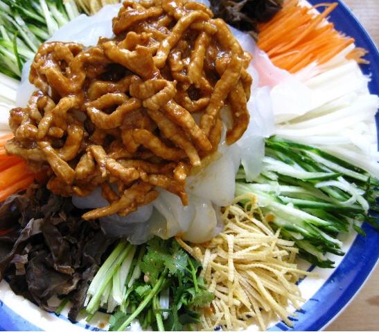 盐、味精、一点点糖调出麻酱,吃的时候再淋在上面