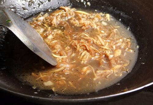 8:热锅下油,炒香蒜头、葱头加入柠檬、酸姜、酱油、料酒、盐,喜欢吃辣的朋友加点辣椒油。