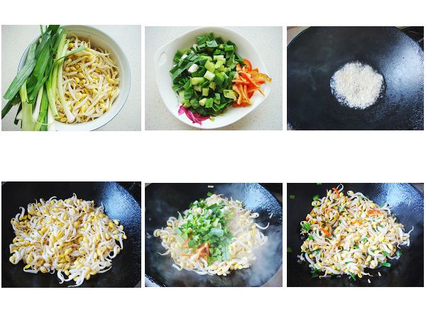 放入黄豆芽翻炒片刻即可,炒得过久太软烂会影响口感。