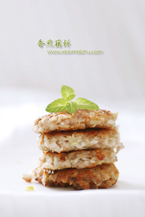 藕去皮洗净,擦碎。加肉馅,糯米粉,葱花。