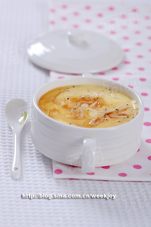 材料:笨鸡蛋2个(去壳70g),虾皮一撮,温水140g。