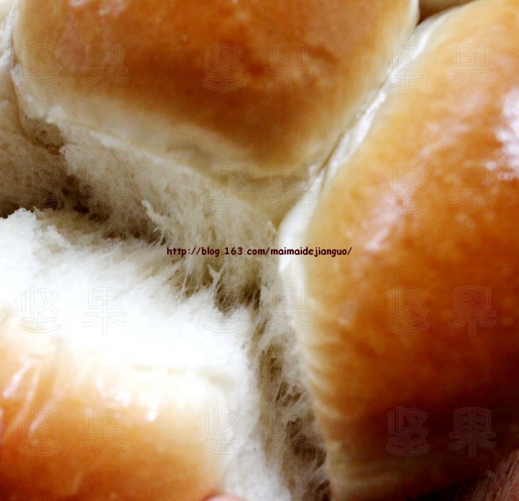 刚烤完的面包很饱满,表面光洁(如上图),放置一会后表面就会稍稍起皱了(如下图),不要紧,因为它柔软嘛