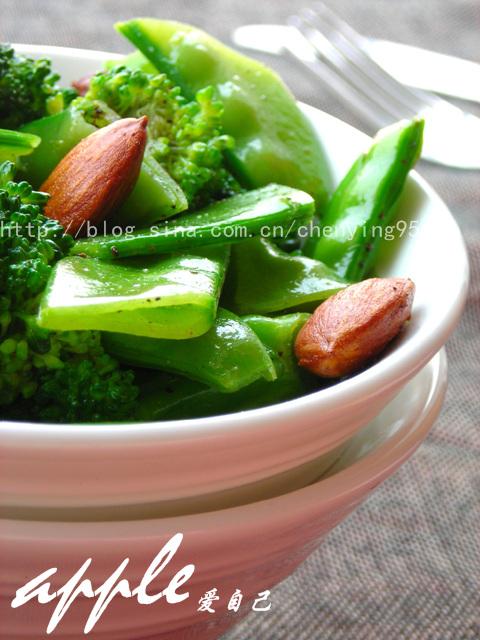 荷兰豆西兰花杏仁沙拉的做法(减肥食谱)