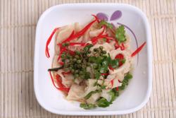 调料:香醋、料酒、盐、白糖、胡椒粉、香油、红油、香菜、蒜、鲜麻椒