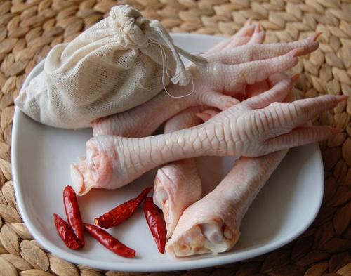 1、鸡爪洗净用厨房剪刀剪去脚趾部分。