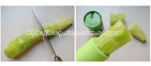 2、将莴笋切段,固定在蔬菜绞丝器上。