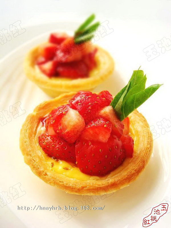 5、蛋挞出炉后,切点草莓放上面即可食用。