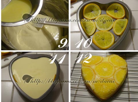 这个橙子蛋糕下面是细腻的黄金海绵蛋糕,上面是清爽的橙片,味道不错!