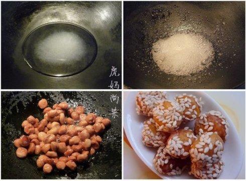 3.放入炸好的糖豆,快速的翻炒,让糖豆均匀的裹上一层糖汁